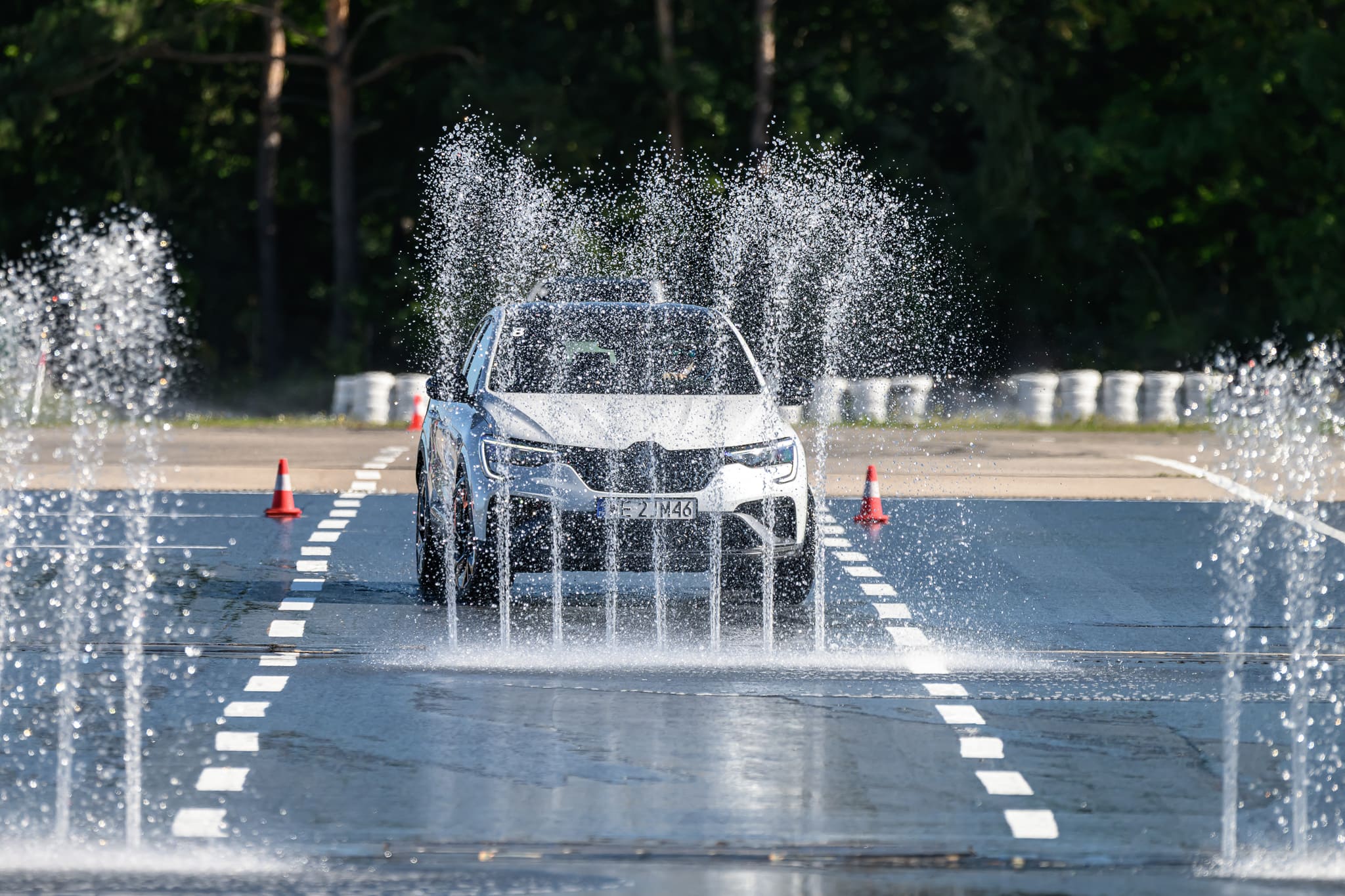 Hamowanie awaryjne z ominięciem przeszkody – trening na płycie poślizgowej z wykorzystaniem nagle pojawiających się kurtyn wodnych z pomiarem prędkości